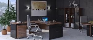 Це прекрасне рішення для сучасного і динамічного інтер'єру, що відображає в собі всі актуальні віяння в області меблевого дизайну. Загальний дизайнерський малюнок серії побудований на візуальному контрасті деревної і глянсової фактур. Кабінет підкорює не тільки ергономічністю і функціональністю, але і ефектною виразністю і відточеністю ліній.