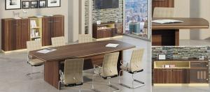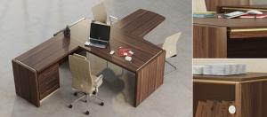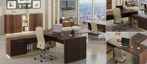 Дана кабінетна система поєднує в собі рішення, які роблять робоче місце сучасним і комфортним. Вона ідеально підходить для інтер'єрів, оформлених в стилі сучасного мінімалізму. Витончена легкість стільниць столів, в поєднанні з масивними опорами, підкреслює вишуканість і елегантність колекції.