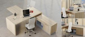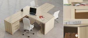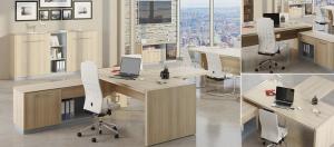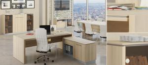 Дана кабінетна система поєднує в собі рішення, які роблять робоче місце сучасним і комфортним. Вона ідеально підходить для інтер'єрів, оформлених в стилі сучасного мінімалізму. Витончена легкість стільниць столів, в поєднанні з масивними опорами, підкреслює вишуканість і елегантність колекції.
