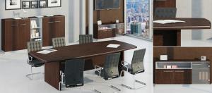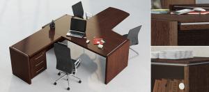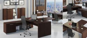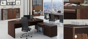 Дана кабінетна система поєднує в собі рішення, які роблять робоче місце сучасним і комфортним. Вона ідеально підходить для інтер'єрів, оформлених в стилі сучасного мінімалізму. Витончена легкість стільниць столів, в поєднанні з масивними опорами, підкреслює вишуканість і елегантність колекції.
