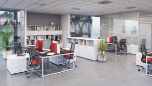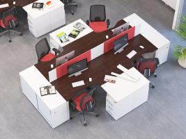 і композиційні рішення. Грамотно організоване офісний простір забезпечує ефективну роботу в команді. Системи робочих місць на суміщених опорах мінімізують використання додаткових металевих елементів, що значно знижує їх вартість.